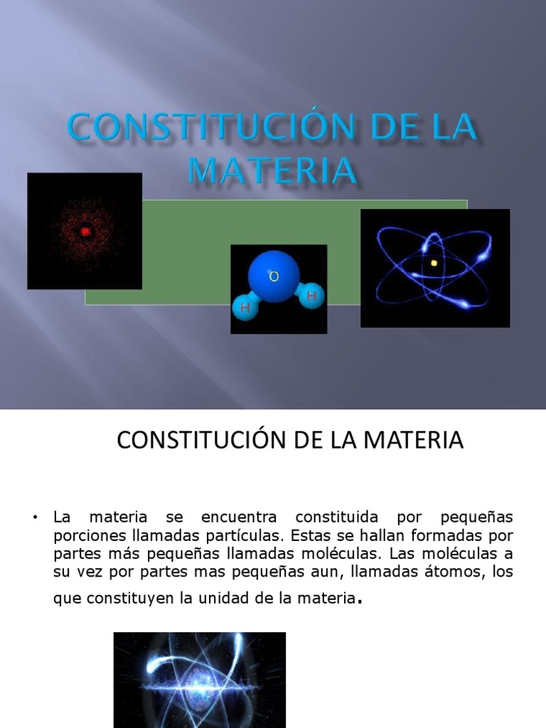 Aquí hay una explicación constitucion de la materia atomos y moleculas podemos compartir. La composición o constitución de la materia comprende las partículas elementales átomos y moléculas así como la manera en que éstos se unen enlaces. Administrador blog Compartir Materiales 2019 también recopila imágenes relacionadas con constitucion de la materia atomos y moleculas se detalla a continuación.
